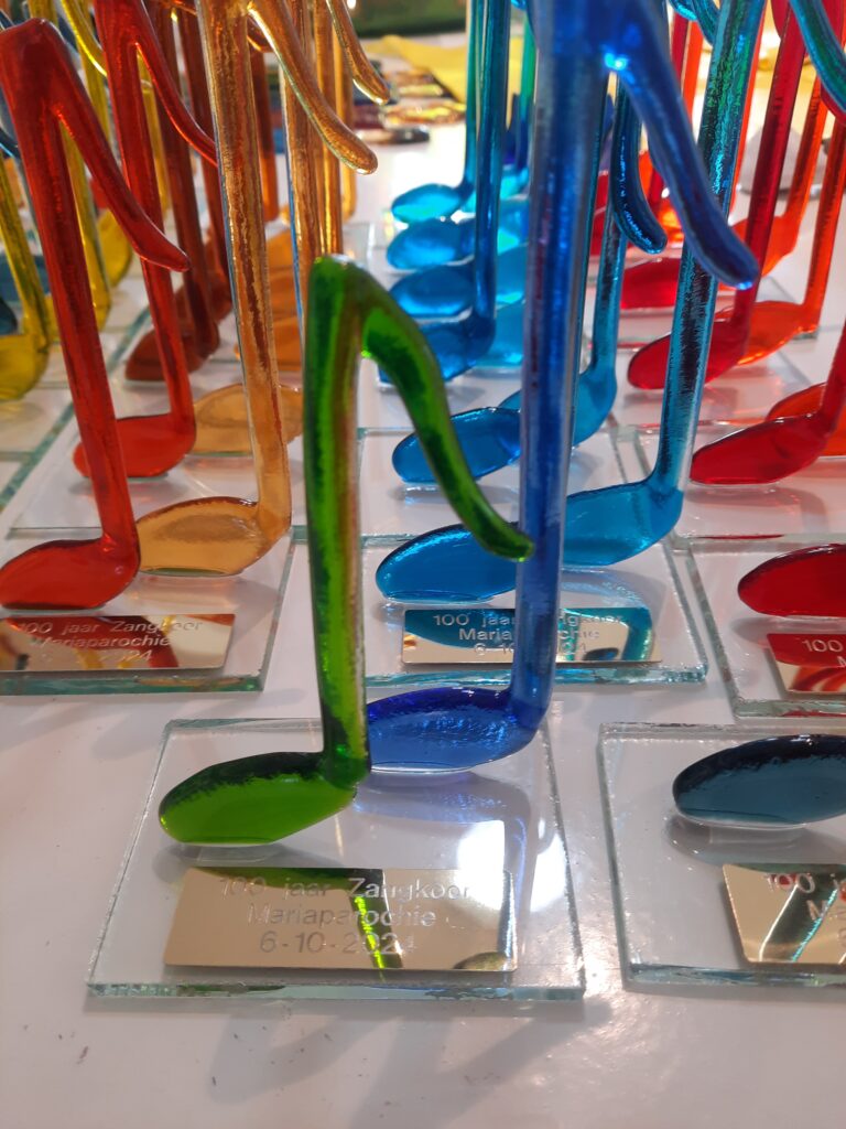 Afscheidscadeau voor alle koorleden met een gepersonaliseerde gravure.