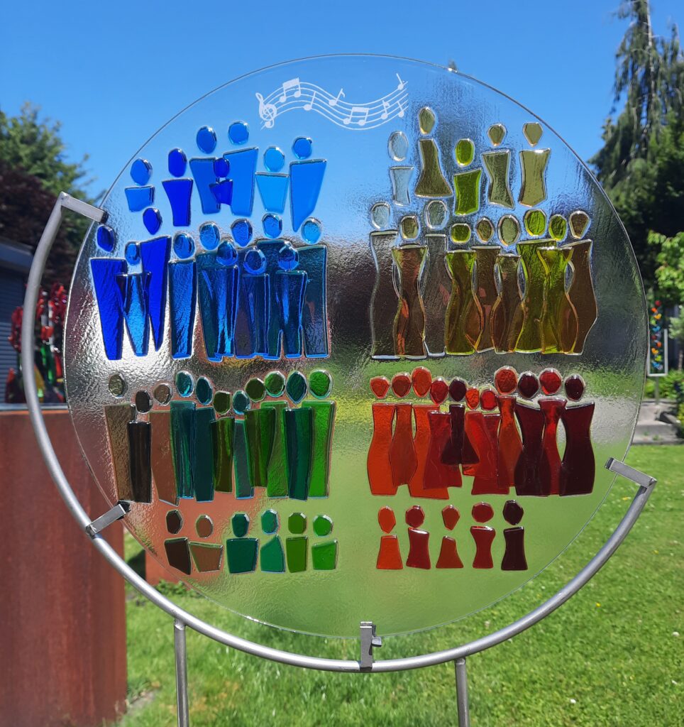 Dit is een afscheidscadeau van een koorlid waarin alle muziekgroepen vertegenwoordigd zijn, zoals bas, alt, sopraan en tenor.