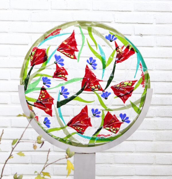 Deze wandpaneel met klaprozen is een echte eye catcher in uw woning 60 cm dan. Ook op sokkel in uw tuin mogelijk. Prijs sokkel 275